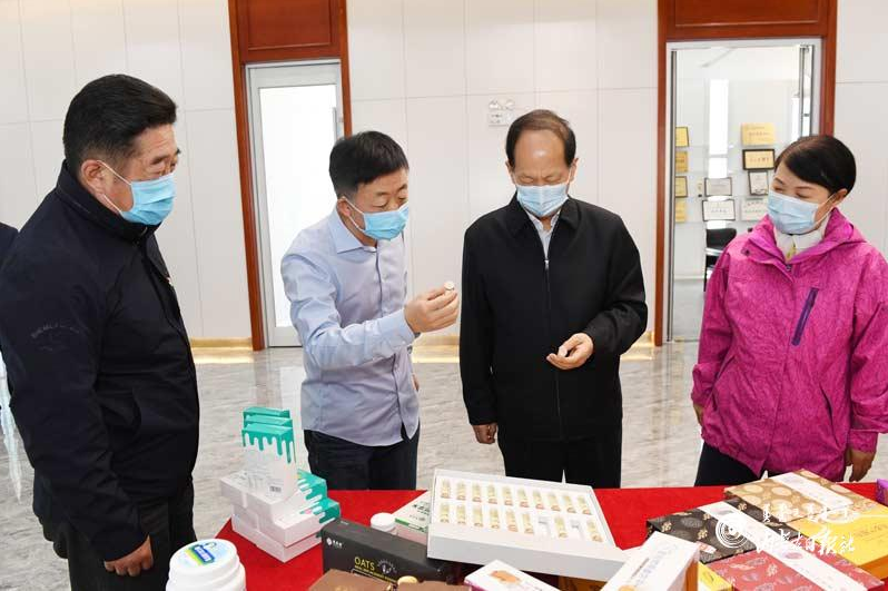 農(nóng)業(yè)產(chǎn)業(yè)發(fā)展離不開龍頭企業(yè)的帶動(dòng)。石泰峰先后來到蒙禾源菌業(yè)公司、燕谷坊生態(tài)農(nóng)業(yè)公司和薯元康生物科技公司,走進(jìn)種植大棚、產(chǎn)品展廳,詳細(xì)了解企業(yè)生產(chǎn)經(jīng)營(yíng)、產(chǎn)品研發(fā)銷售等情況。他指出,鄉(xiāng)村發(fā)展關(guān)鍵看產(chǎn)業(yè),要立足本地優(yōu)勢(shì),從長(zhǎng)遠(yuǎn)出發(fā)謀劃和推進(jìn)產(chǎn)業(yè)發(fā)展,下更大功夫培育打造龍頭企業(yè),有力帶動(dòng)農(nóng)業(yè)增效、農(nóng)民增收,為鄉(xiāng)村振興奠定堅(jiān)實(shí)基礎(chǔ)。要順應(yīng)人們對(duì)健康綠色食品的消費(fèi)需求,做好特色農(nóng)產(chǎn)品精深加工的文章,積極開發(fā)多樣化產(chǎn)品,加快推動(dòng)產(chǎn)品進(jìn)商場(chǎng)、進(jìn)超市、出區(qū)外,努力開拓更大市場(chǎng),提升產(chǎn)業(yè)發(fā)展質(zhì)量和效益。要高度重視壯大村集體經(jīng)濟(jì),增強(qiáng)基層黨組織服務(wù)群眾的能力。