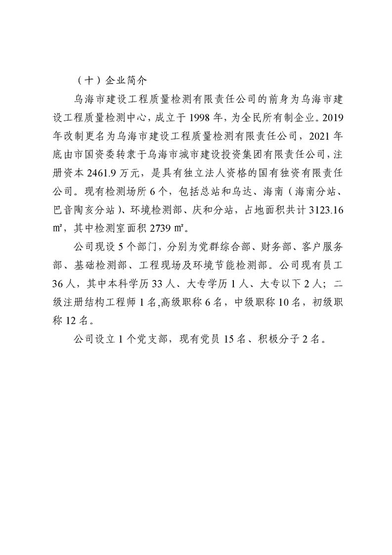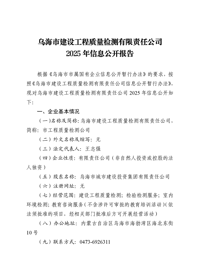 - 2025-03-10烏海市建設(shè)工程質(zhì)量檢測有限責任公司2024年度信息公開報告