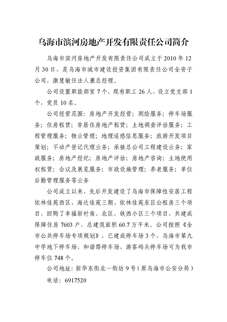 - 2025-03-10烏海市濱河房地產(chǎn)開發(fā)有限責任公司2024年度信息公開報告