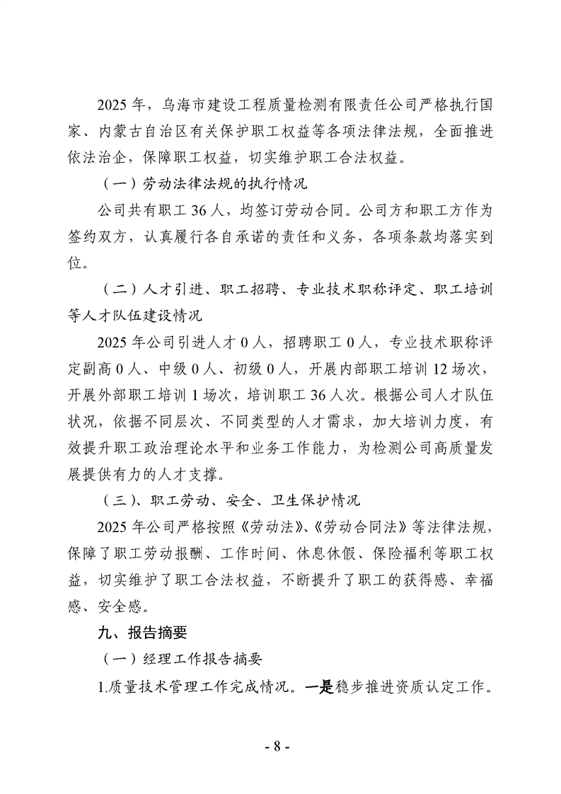 - 2025-03-10烏海市建設(shè)工程質(zhì)量檢測(cè)有限責(zé)任公司2024年度信息公開報(bào)告