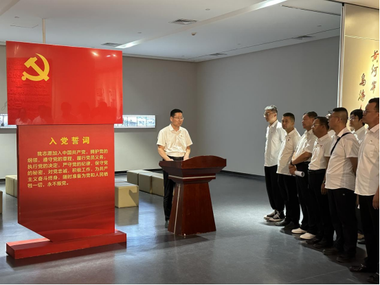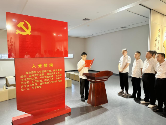 隨后,活動(dòng)進(jìn)入政治生日環(huán)節(jié)。在鮮紅的黨旗前,全體黨員神情肅穆,右手握拳高舉,齊聲重溫入黨誓詞:“我志愿加入中國(guó)共產(chǎn)黨,擁護(hù)黨的綱領(lǐng),遵守黨的章程……”字字千鈞的錚錚誓言在展廳內(nèi)激蕩回響,這不僅是黨員們對(duì)黨的赤誠(chéng)告白,更彰顯著他們?yōu)楣伯a(chǎn)主義事業(yè)奮斗終身的堅(jiān)定信念。新發(fā)展黨員代表走上臺(tái)前,以真摯的話語(yǔ)作出莊嚴(yán)承諾;最后,黨委書(shū)記王海軍發(fā)表《做新時(shí)代合格共產(chǎn)黨員》主題寄語(yǔ),激勵(lì)全體黨員在新時(shí)代新征程上勇?lián)姑㈨频Z前行。