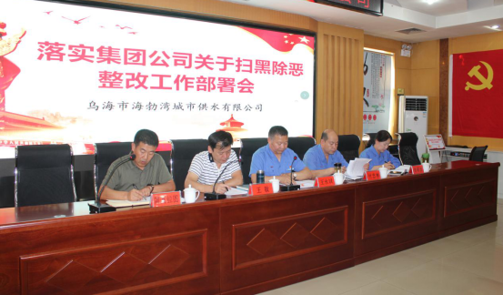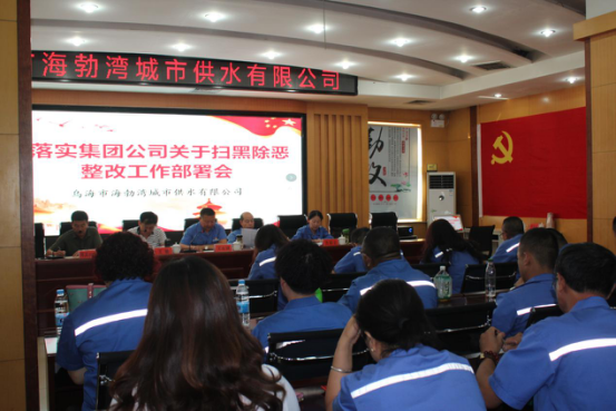 會(huì)議重點(diǎn)部署落實(shí)集團(tuán)公司《關(guān)于印發(fā)<中央掃黑除惡第15督導(dǎo)組督導(dǎo)內(nèi)蒙古自治區(qū)第一階段督導(dǎo)反饋意見和下沉烏海市督導(dǎo)提出問題的整改方案>的通知》(烏投資集團(tuán)發(fā)〔2019〕126號(hào))文件精神,明確供水公司整改方案相關(guān)要求等;與會(huì)人員簽訂《烏海市海勃灣城市供水有限公司掃黑除惡專項(xiàng)斗爭承諾書》;通報(bào)《烏海市海勃灣城市供水有限公司關(guān)于落實(shí)掃黑除惡工作推進(jìn)情況》。